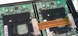 Like Killer Notebooks’ Odachi, Eurocom’s solution exhausts air out the back of its chassis by pulling it in from underneath. But because the Montebello isn’t hosting a 95 W desktop processor or pair of graphics boards, it gets by with just one fan blowing over a heat pipe and fins. Though the thermal load isn’t nearly as demanding, we’re still not big fans (pardon the pun) of drawing air from under the chassis.