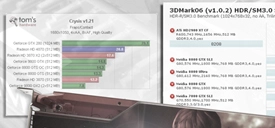 The local grid provided more than 110,000 watts of power for our tests, while the neighbors were serenaded by the maximum noise level of 58.3 dB(A) when running AMD’s Radeon HD 2900 XT CrossFire and X1950 CrossFire. The GTX 260 SLI and 8800 Ultra SLI reached temperatures of over 100 degrees C, causing the GPUs with no additional fans to give up and either choke thermally or crash the PC.