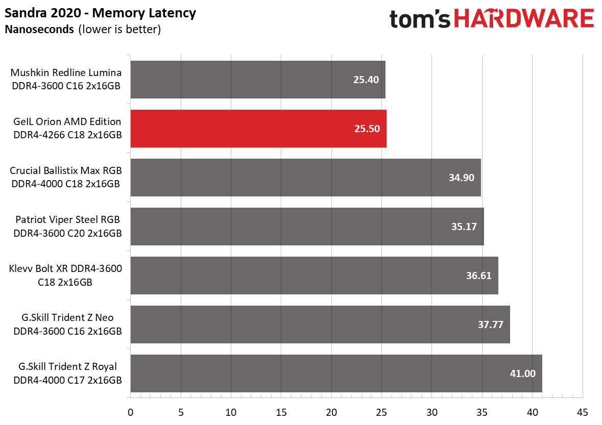 Burdened by a single-rank design, GeIL's Orion AMD Edition DDR4-4266 C18 fails to keep up with rival 2x16GB memory kits that leverage a dual-rank design.