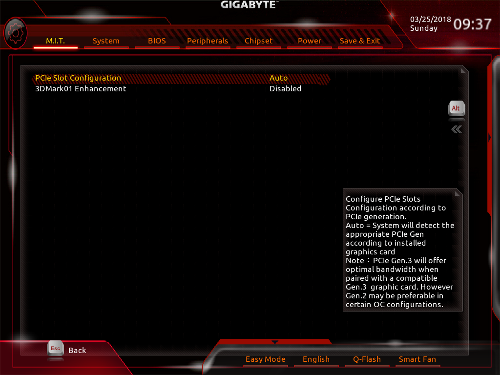 Looking beyond the surface, both UEFIs perform and operate on par with each other. The default panel presented is the M.I.T. menu, which opens up options for CPU and memory frequencies, voltage and fan settings, and miscellaneous options for the processor and system. Continuing to drive across the high-level tabs, System shows general time and UEFI version dates, the Peripherals tab opens options for the network interface controller and grants access to the original AMD X399 options, and Chipset primarily offers up PCIe and storage options.