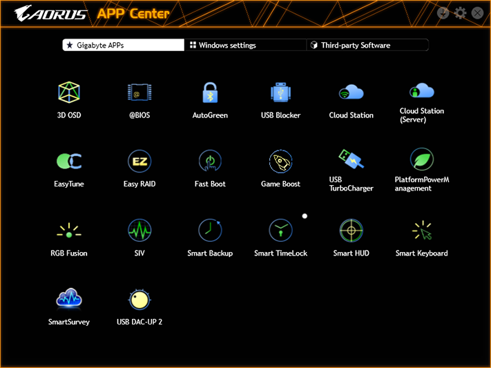 The Aorus App Center includes a multitude of Gigabyte applications, from a system monitor overlay for 3D applications (3D OSD) to online storage and a web server (Cloud Station and Cloud Station Server). Of these, EasyTune, RGB Fusion and SIV (System Information Viewer) automatically configure themselves to the Z390 Aorus Master’s specifics.
