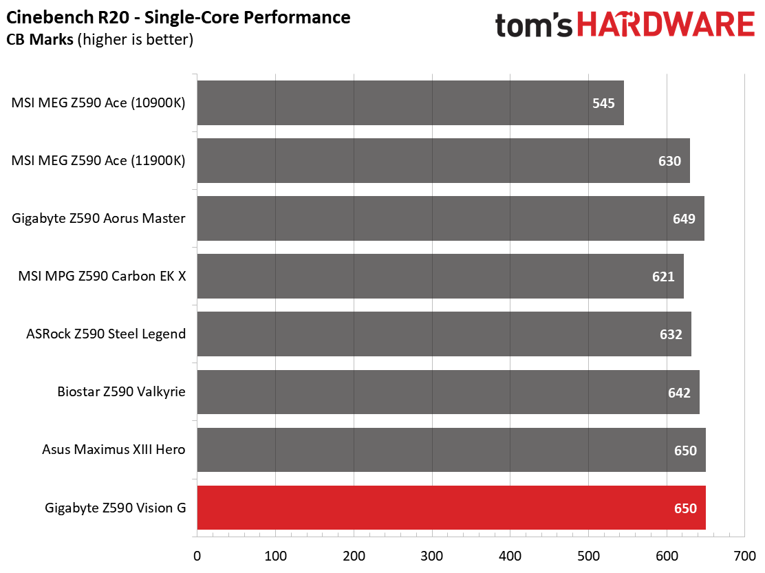 Our synthetic graphic tests, 3DMark Time Spy and Fire Strike, continued the theme of not standing out. The Gigabyte Z590 Vision G matched the other tested boards. In F1 2020, the system averaged 210 frames per second (FPS), one of the faster results, while Far Cry: New Dawn averaged 145 FPS, also an ever so slightly faster result. We found no issues with gaming at all.