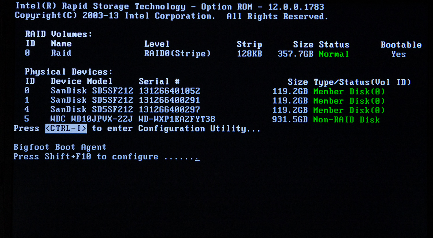 CrystalDiskMark shows us that the RAID 0 array delivers sequential read and write speeds in excess of what one 2.5” SSD can do over a SATA 6Gb/s link.