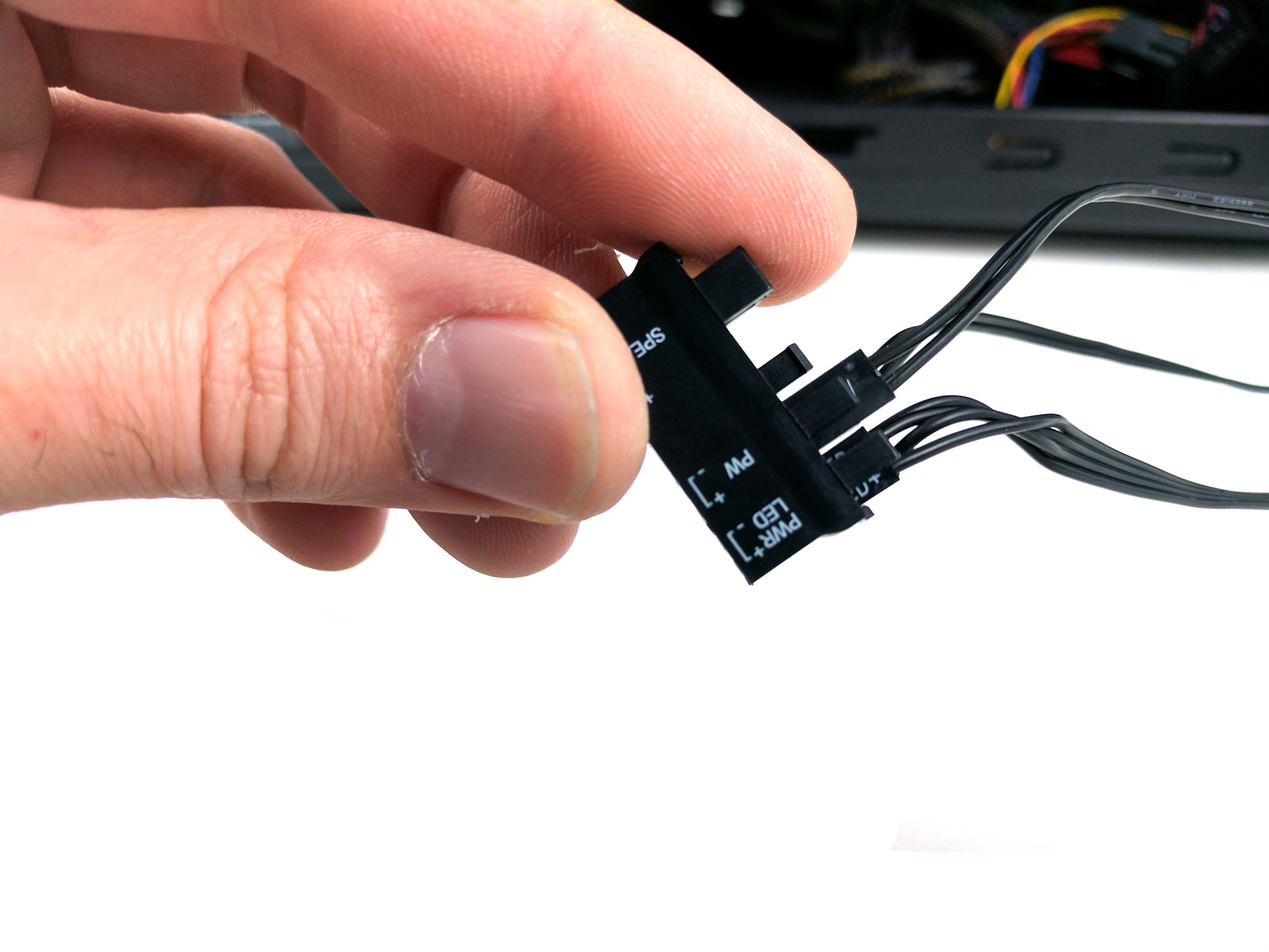 Plug in the Audio, USB 2.0, and G-Connect (front panel I/O) to the appropriate ports on the motherboard (see slides 2 - 4 in the album below). You can tie the wires together to make them somewhat neater, but the cable management doesn’t need to be pristine (there’s no window on this case). You’ll also need some slack in the cables later on, so don’t make things too tight.