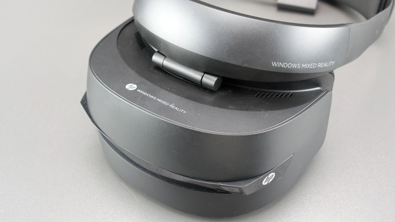 Like many Windows MR headsets, the HP headset features a hinged visor that enables you to flip the screen up to see the real world without taking the headset off completely. Sadly, HP’s hinge design is no better than other Windows MR headsets we’ve seen. In the short time we spent with the headset, we already noticed wear in the hinge. The weight of the visor puts too much pressure on the plastic hinge, which causes it to sag. At this rate of deterioration, it would be a miracle if the hinge still holds the visor up after a year of regular use.