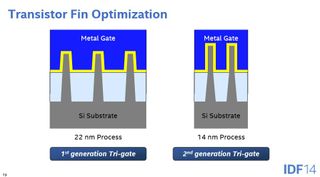 Intel says that taller transistor fins and wider gate pitch endow its 14nm+ process with an additional 300 to 400 MHz clock rate capability. That’s huge if it turns out to be true. As a motherboard reviewer, it’s also one of the first things I wanted to test!