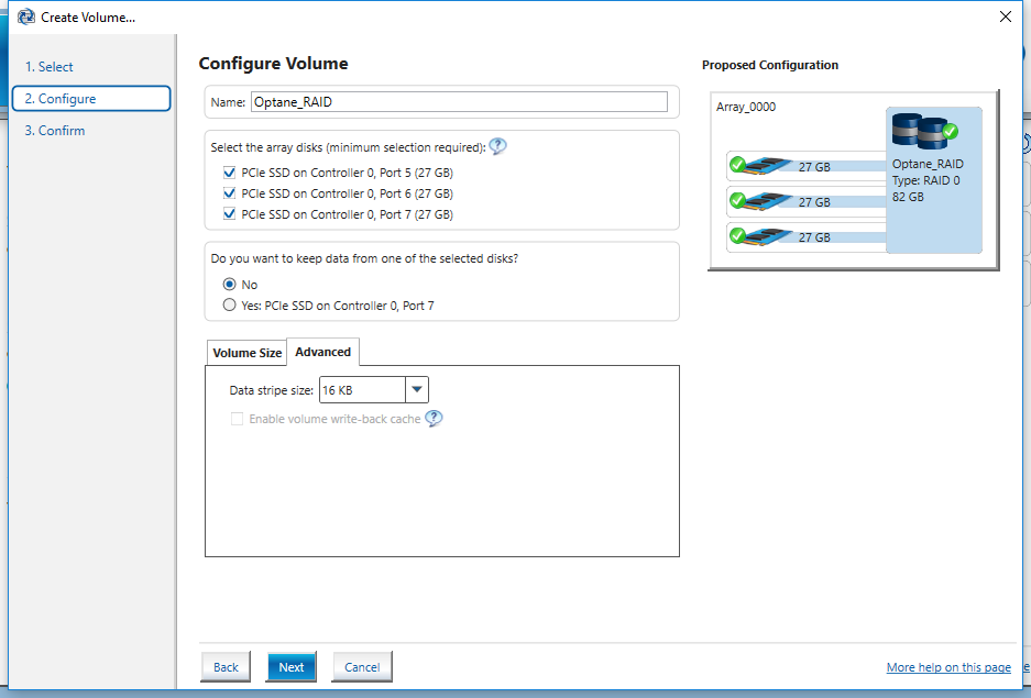 For this article, we're not worried about creating the caching array that preloads the high-speed device with frequently-accessed data. We are simply using three Optane devices together, forgoing the special software, and just muscling through the workloads with brute force.