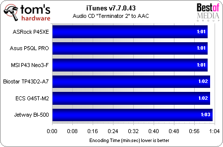 Our audio encoding applications favor the ASRock P45XE, but not by a significant margin.