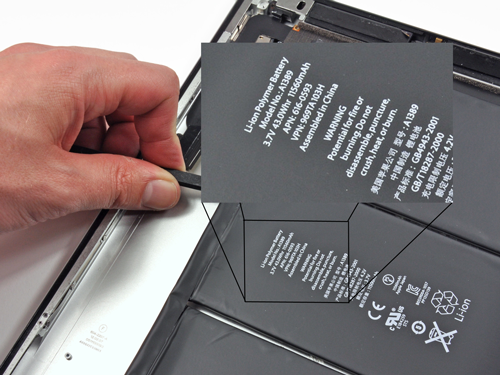 Enhanced image quality and correspondingly higher power draw requires a larger battery. Apple’s solution for the iPad 3 is a whopping 42.5 Wh Li-ion battery, representing a substantial change from iPad 2’s battery rated at 25 Wh. This larger battery explains the iPad 3’s added heft, but also helps explain how Apple is able to claim comparable battery life as the iPad 2, even in light of a device that incurs increased power consumption. The Retina display and GPU are both both notable energy hogs, but the 70%-larger battery pack compensates for the greater power demand.