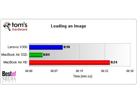 huafi Have you mixed up some of your data? For instance, the article says that "The time it takes for Photoshop CS3 to load up is comparable on both machines, even if the Windows version is faster", but the data shows that the MBA launched Photoshop in 8 seconds, vs 46 seconds for Windows. That makes the Mac nearly 6 times as fast! And if you're going to show the data for the MBA with mechanical drive, you should note more clearly that that model is much, much cheaper than either SSD machine.Reply
