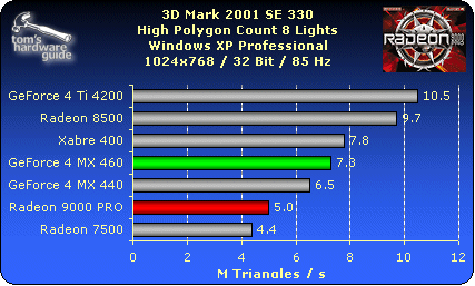Even here, the R9000 PRO loses heavily compared to the R8500, ending up just before last place, which is held by the R7500.
