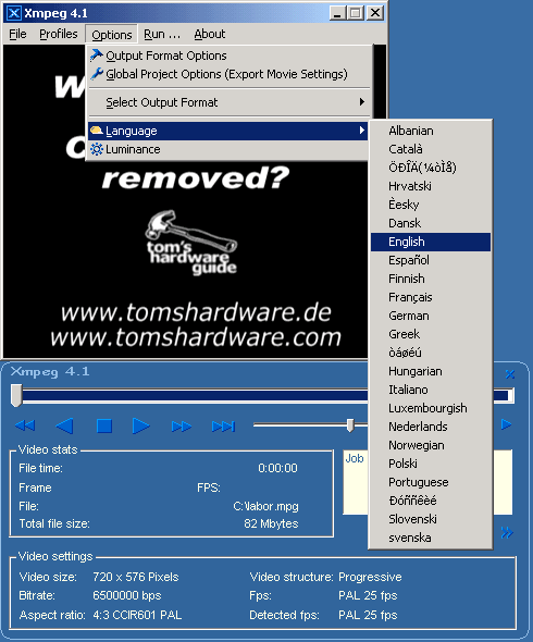 In principle, this latest version of Flask Mpeg processes the same video formats as the earlier versions: VOB files can be read directly from DVD-ROM or MPEG-2 videos. The DVD-ROM option is available when a complete film is to be converted from a DVD into MPEG-4 format. MPEG-2 files can also be edited as desired. One peculiarity must be noted when copying DVD videos: Flask 4.1 needs the *.IFO script file so that the individual VOB files can be recognized on a DVD as a complete movie. Otherwise it is necessary to laboriously code each VOB file (about 20 minutes of film) individually and then link them together. With conventional MPEG videos everything is much easier. Both the video and audio streams are recognized and Flask transfers the desired parameters to the DivX Codec (MPEG 4 codec).