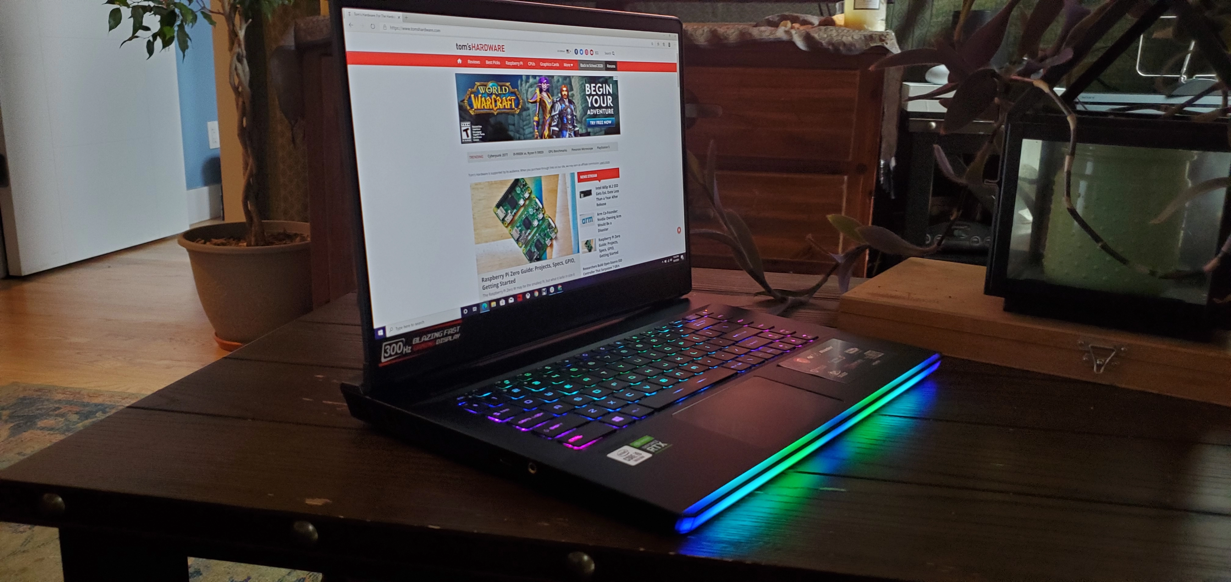 The MSI GE66 Raider sits atop a beautiful RGB bar, and that’s just the start of its premium build. Gaming framerates are competitive or better than slightly pricer rivals, and the 300 Hz screen is great for esports.