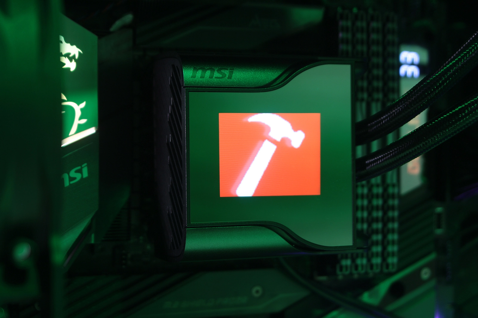 MSI’s Center software (sorry Lucky, no dragon here) controls the MEG CoreLiquid S360, powering a multitude of features from graphics, lighting and system cooling. The LCD display can offer up a revolving (or fixed) set of system information such as CPU core speed, coolant and processor temperatures, memory or system load--even local weather. Personalized text, logos and animated GIFs can be loaded to the display screen simply by choosing files or typing data in. Additional customization includes defining various performance configurations, such as various pump speeds, fan curves and cooling profiles.