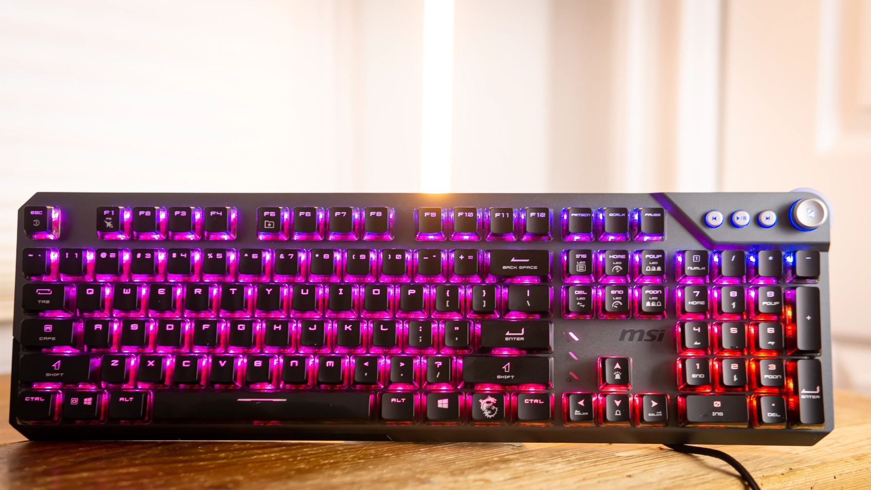 If you're after something basic, you can save a few bucks by opting for HyperX's Alloy Origins instead, It doesn't ship with a wrist rest and lacks dedicated media keys, but it sells for just $80 and both looks and feels better than this MSI option.