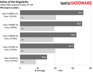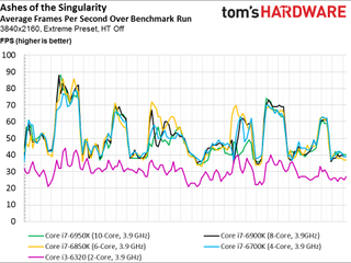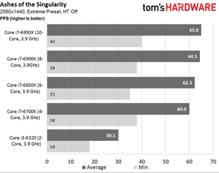 Ashes actually requires a quad-core CPU (though it’ll run on a dual-core processor, as you’ll soon see). Based on Wardell's interview, this appears related to the game’s AI subsystem. We don’t, however, expect sizeable gains from multiple cores at the resolutions that typically tax high-end graphics cards. At 4K, a GeForce GTX 1080 just isn’t “fast enough to keep up,” borrowing from Wardell’s caveat.