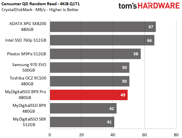 The BPX Pro notched a decent responsiveness score but trailed the BPX and almost every other NVMe SSD.