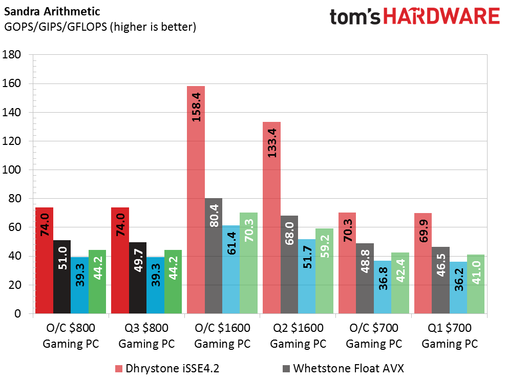 As expected, we see a modest bump in CPU performance, and an even more pronounced increase from the GPU. Interestingly enough, we actually manage to come close to the $1,600 gaming PC in the PCMark 8 Work and Home benchmarks and even manage to exceed that PC in the Storage benchmark. However, since the storage benchmark is well within the three percent margin of error, I can’t exactly call it a victory. In the rest of the synthetics, the results return to more of what we would expect.