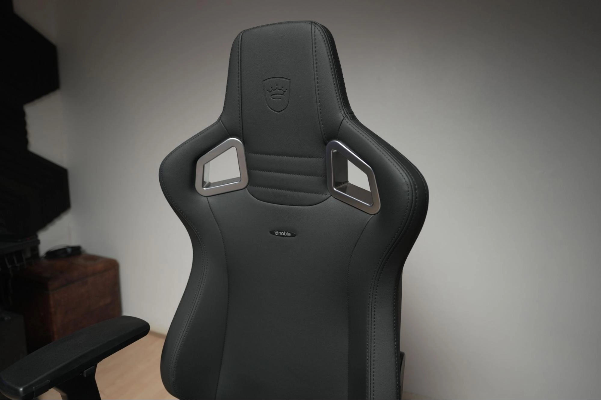 The Epic has an eye-catching design, with two angular cutouts in the left and right shoulder regions. The cutouts, which are a carryover from racing seats, are lined with high-grade plastic in a glossy, dark silver finish. The silver finish contrasts with the dark color of the chair, which makes the cutouts stand out, but I think it would look better without the stark contrast. If color-matching matters to you, you’ll be pleased to know that the synthetic leather model does use black plastic.