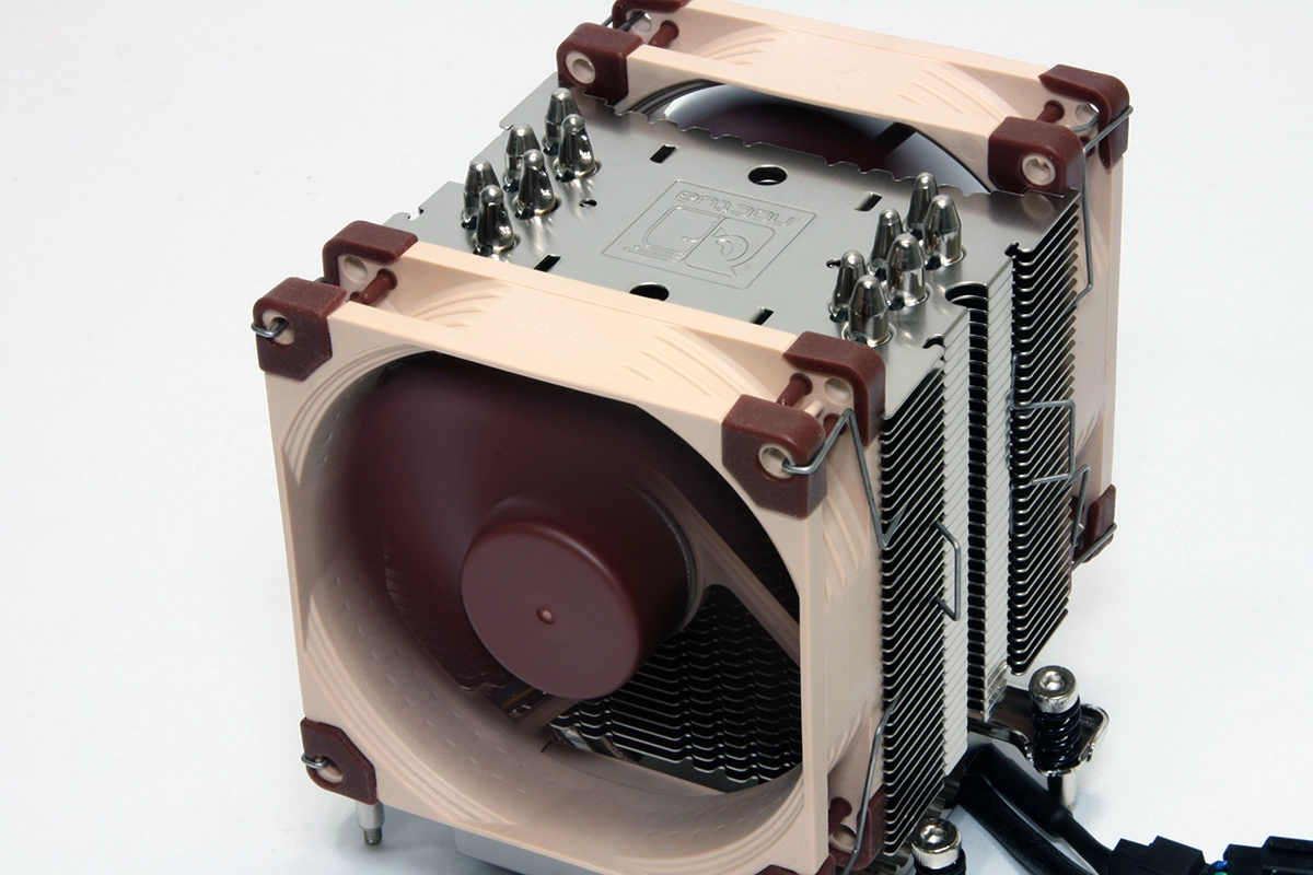 The NH-U9 TR4-SP3 is shorter than most standalone cooling towers, with all six of its nickel-plated copper heatpipes clustered closely together across the depth of the cooling tower. Utilization of dual 92mm fans also enable the the NH-U9's narrow shape.