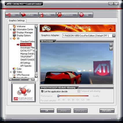 The last piece of this puzzle is the software. ATI's unified driver architecture, Catalyst, is exactly what the word implies: a tool for making the hardware operate seamlessly. The drivers and user interface are all incorporated into a neat package, much like they have been in the past. From what we have heard, the control panel will stop being supported some time in the future, however - much to the chagrin of enthusiasts.
