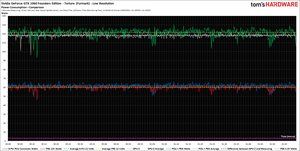 Now we're getting into the nitty gritty. Measurements across the different rails during our taxing gaming and stress tests show that Nvidia manages to distribute the load well with a bias to the six-pin power connector. The 3.3V rail isn't used anymore, which is why you won't find it in our charts.