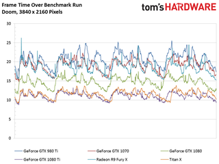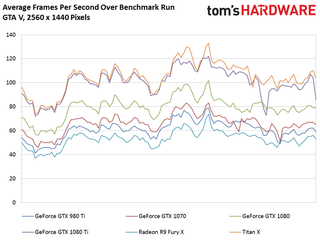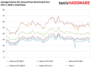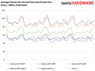 This time around, Nvidia’s Titan X (Pascal) lands in the lead by a few frames per second. Still, the GeForce GTX 1080 Ti is more than 26% faster than the 1080, and 65% quicker than an older 980 Ti.