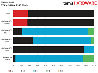 Fortunately, all of the cards are fast enough at 4K to deliver what our unevenness index considers to be acceptable playability.