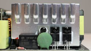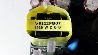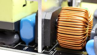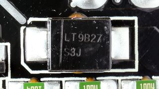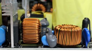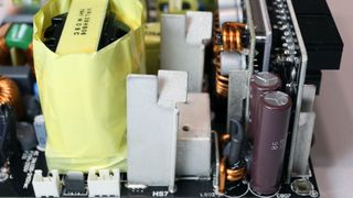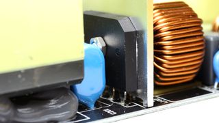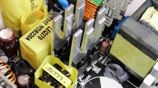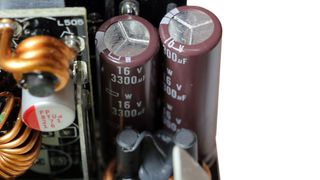 The Chemi-Con KZE caps don't have such a high life but are usually met in good power supplies, and if they are combined with other, higher quality caps, they don't bring any trouble in the long run. Besides the KZE caps, we also find W, KY, and two Rubycons (YXG). Many polymer caps are also used for ripple filtering purposes.
