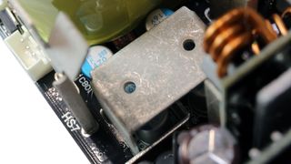 The APFC converter uses two Infineon FETs and a single boost diode, provided by STMicroelectronics, which is strong enough to handle this PSU's needs. The bulk cap is provided by Chemi-Con and has enough capacity to allow for a much longer than 17ms, hold-up time.