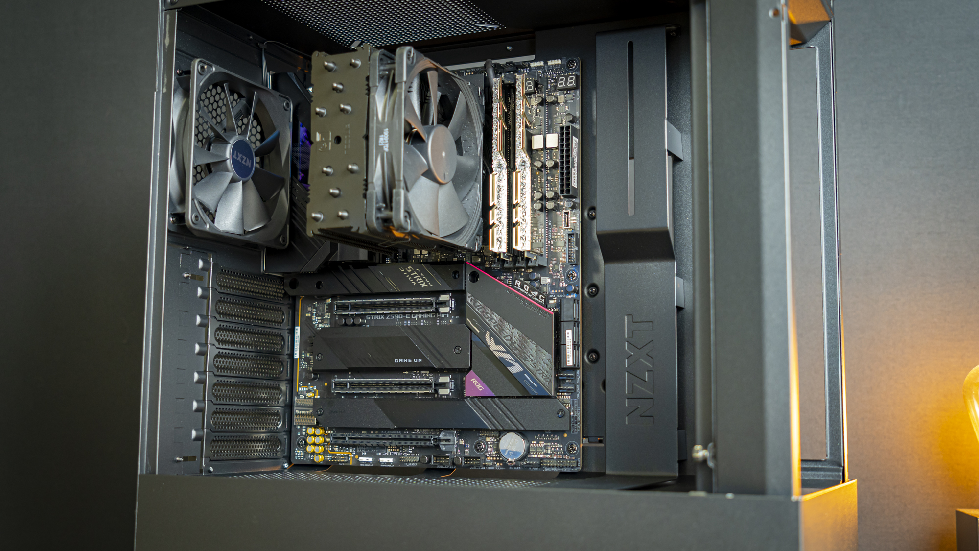 Installing the motherboard into the H510 Flow, with the CPU, CPU cooler, SSD and memory pre-installed was a breeze. The central standoff acts as an anchor, letting you install the board with the system upright, a nice convenience and time-saver.