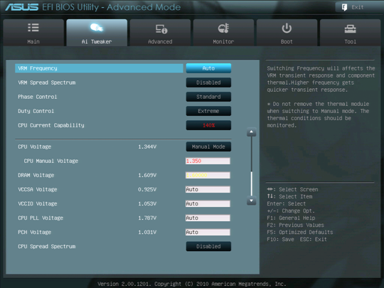UEFI gives Asus’ AI Tweaker menu a new face, which is accessed by mouse-clicking the Advanced Mode button on a main menu that seems to be designed to discourage the uninitiated. Modifications are relatively easy once the advanced menu has been exposed.