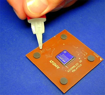 Once the contacts have been fully insulated with tape, the super glue can be applied to the gap. Make sure to apply a well-measured dose of the glue so that only a modicum of glue ends up on the processor.