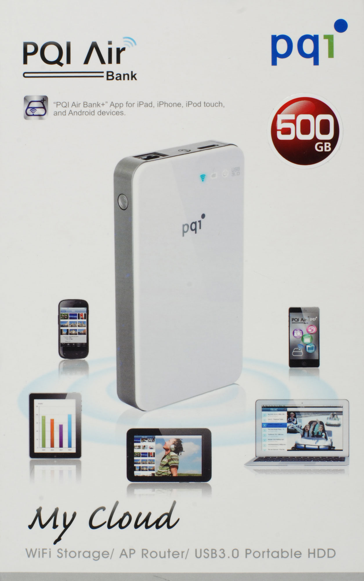 At first glance, the Air Bank looks inconspicuously like an external 2.5” drive, similar to Corsair's Voyager Air and Seagate's Wireless Plus. That is indeed part of the story; you can buy PQI's Air Bank in two versions: with a 500 GB or 1 TB disk drive built-in. PQI sent us the 500 GB model, which isn't widely available online. However, the 1 TB model goes for around $190 on Amazon.