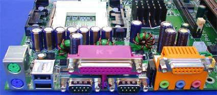 What's striking about the MSI is the unusual way its RIMM slots are configured. Whereas three of them have been built vertically, the fourth has been installed at a 90 degree angle to the others. This unusual design is a by-product of the inexpensive construction, which only uses four and not the usual six layers. Weak points: MSI has only furnished the board with four PCI slots! What's more, the front side bus is heavily overclocked, with the board running at 2030 MHz - definitely too fast! However, BIOS incorrectly lists the speed as 2000 MHz, so that the user doesn't get worried. Since this board comes factory-overclocked at 2030 MHz, it takes the gold in terms of performance.