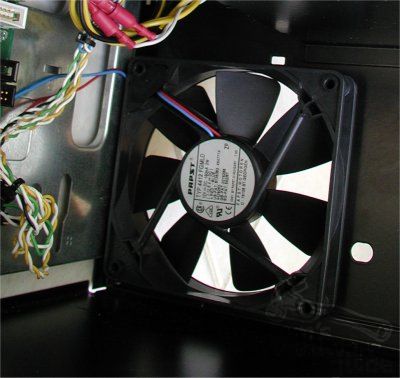 Optionally Asetek supplies a huge extra fan that can be mounted to the front opening of the case. This is for people who are particularly religious about the temperature inside their case or who have very hot graphics cards or hard drives.