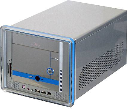 Biostar's new iDEQ 350G resembles its predecessors in both form and function. The only thing that's really different about its appearance is its blue ornamentation, rather than the green widgets included in the iDEQ 300G model. This unit includes neither a built-in VFD nor any multi-function buttons for playback of audio or video CDs and DVDs. Of course, this also means there's no remote control included either. Nevertheless, the iDEQ 350 still makes a good overall impression.