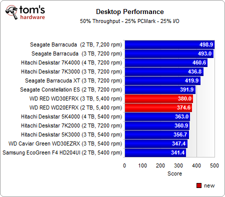 We can wholeheartedly recommend the Western Digital Red drives in their intended application: small business NAS appliances. I/O generally isn't emphasized in that scenario, and the drives do demonstrate good streaming and sequential read/write performance (at 110 MB/s). This leads to fast transfers of large files, a common task in network-attached workloads.