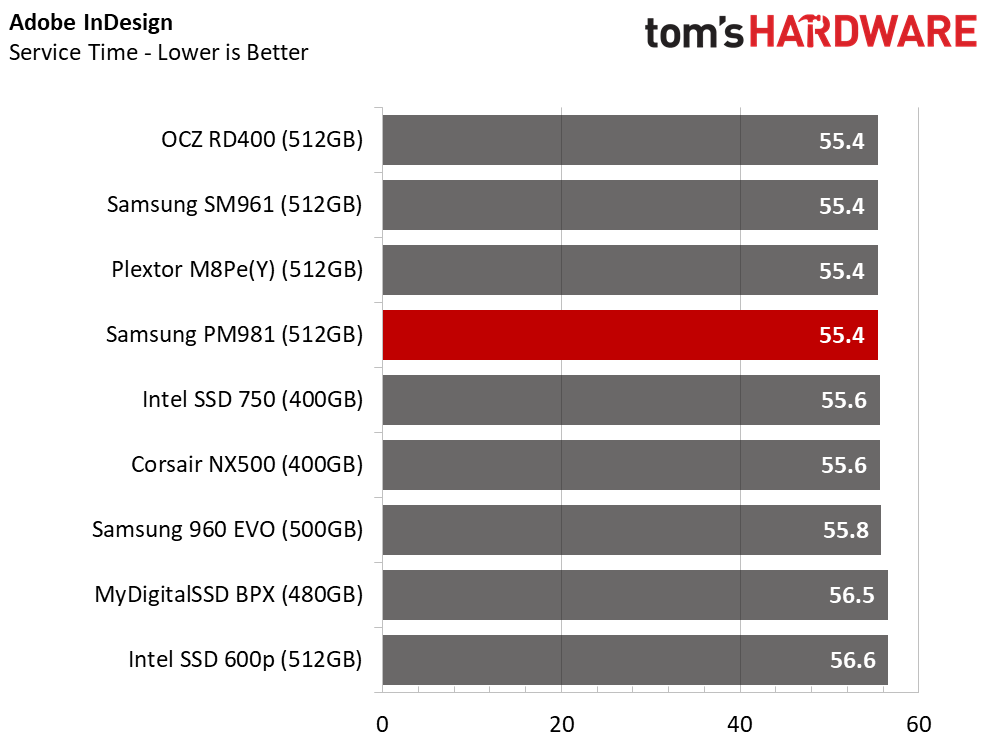 The PM981 easily passes the 960 EVO with the previous generation controller and V-NAND memory. Every SSD that scored higher in the application test will be off the market in the next few months because the NAND will not be available.
