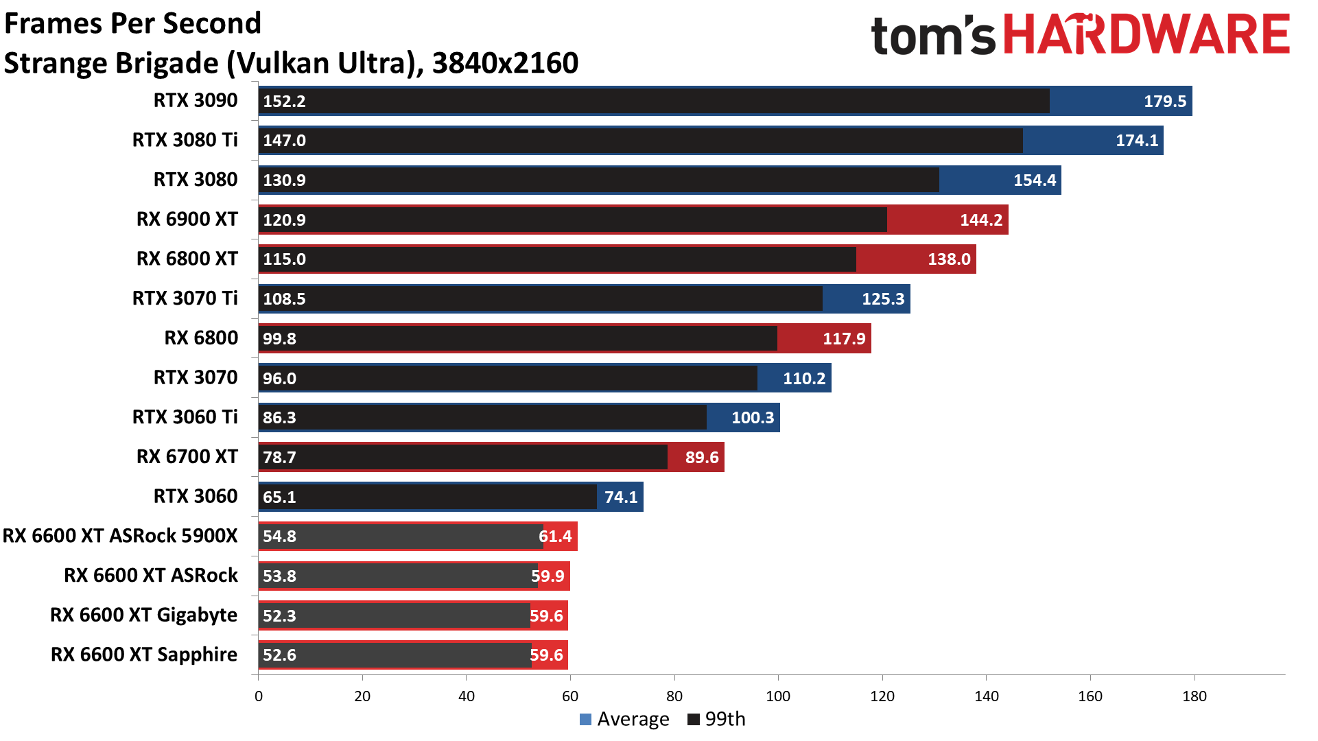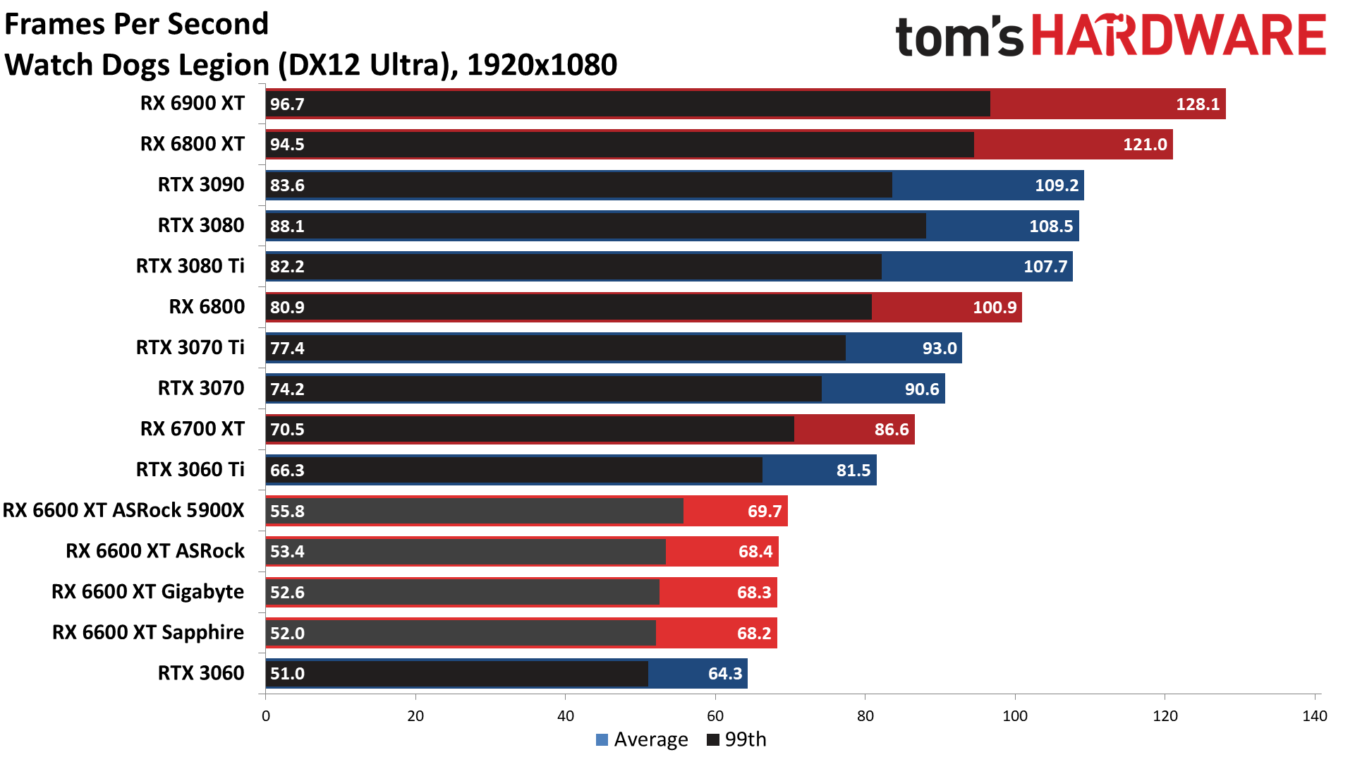 Our basic test hardware remains unchanged from the initial RX 6600 XT launch, except we're using the public 21.8.1 AMD drivers now. You can refer to the launch review for additional details, but we're using the same 13 game test suite. We've also enabled Trixx Boost and tested it at 1440p (2176x1224) as an extra data point. All of the games worked with Trixx Boost, though Dirt 5 required setting the desktop resolution to 2176x1224 and then running at "100% Native" scaling. We'll start with 1080p and then look at 1440p and 4K ultra results.