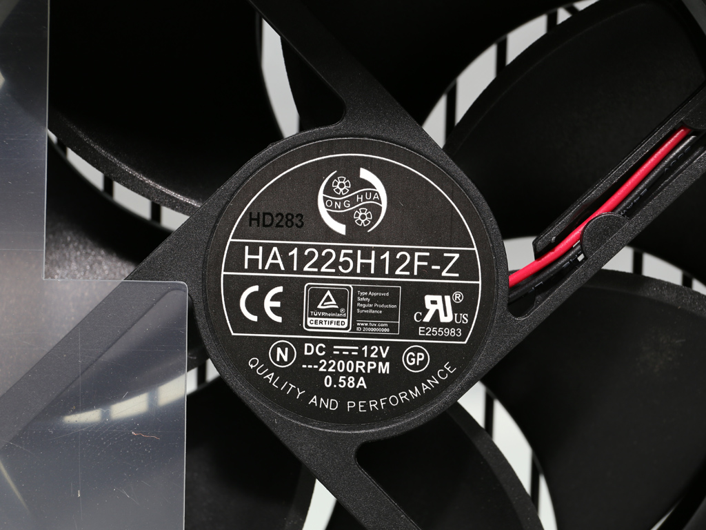 | Fan Model | Hong Hua HA1225H12F-Z (120mm, 12V, 0.58A, 2200 RPM, Fluid Dynamic Bearing) |