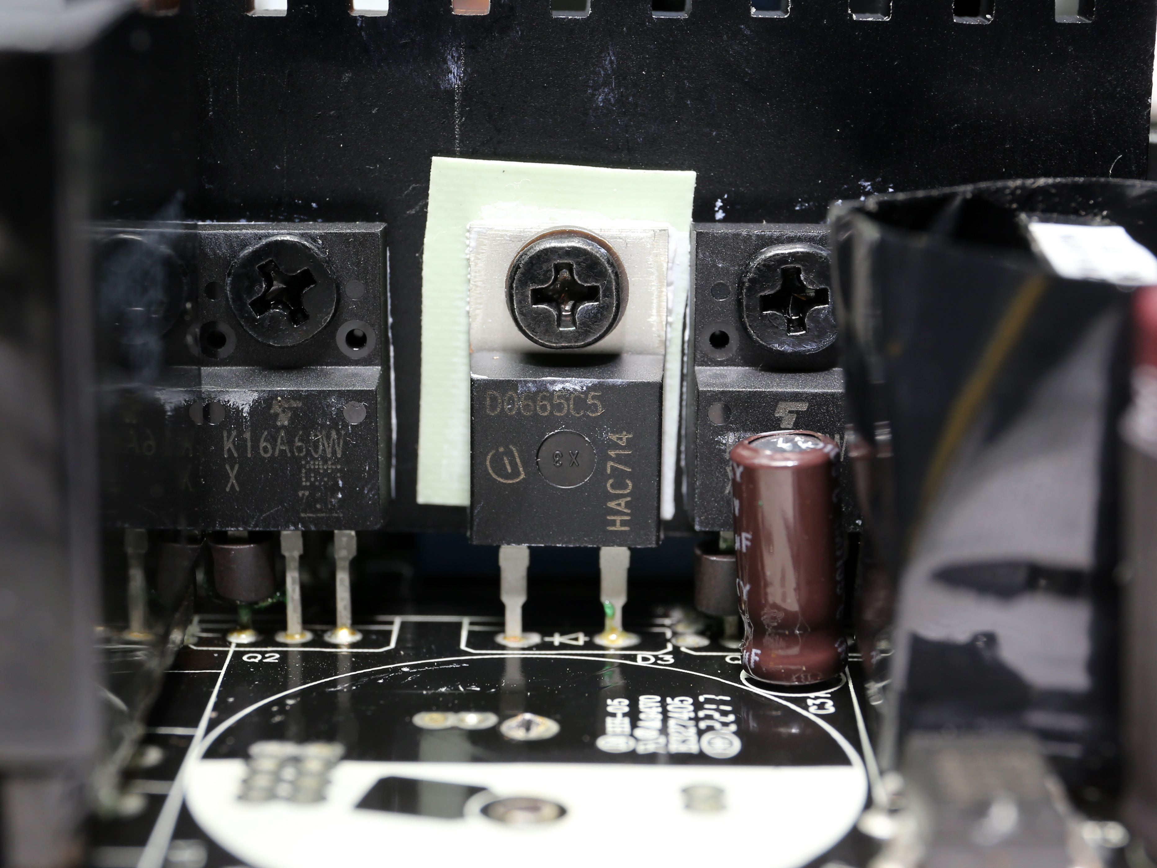 | APFC MOSFETs | 2x Toshiba TK16A60W (600V, 15.8A @ 150°C, 0.19Ω) |