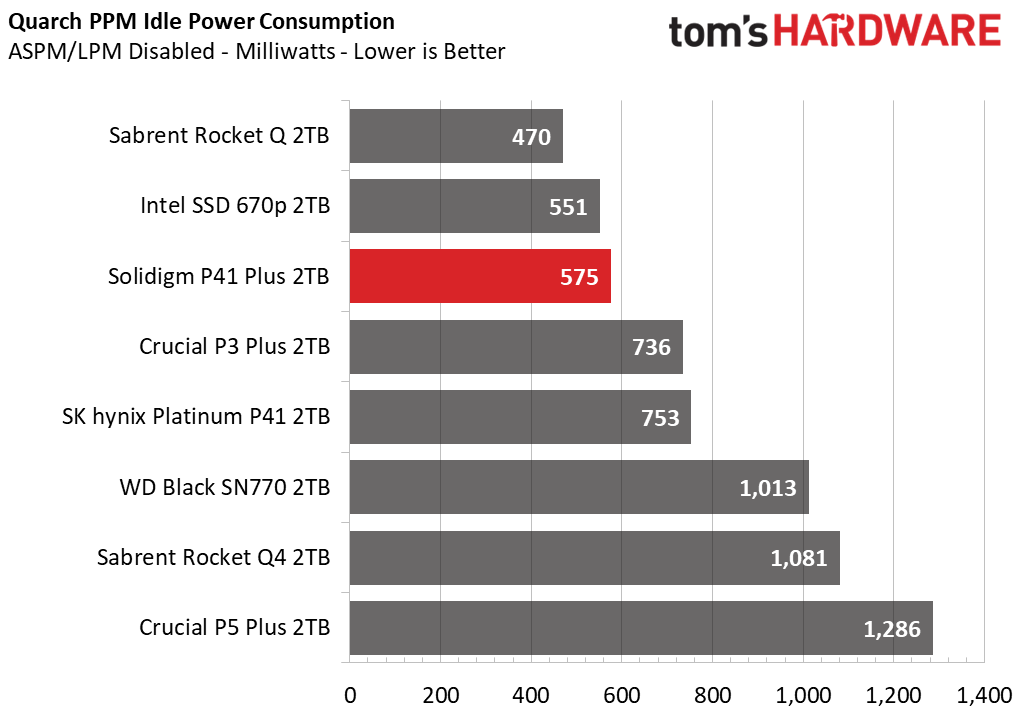 Some SSDs can consume watts of power at idle while better-suited ones sip just milliwatts. Average workload power consumption and max consumption are two other aspects of power consumption, but performance-per-watt is more important. A drive might consume more power during any given workload, but accomplishing a task faster allows the drive to drop into an idle state more quickly, ultimately saving energy.