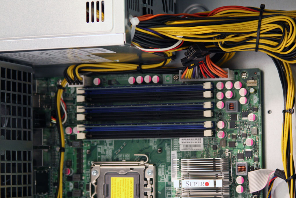 Connectivity is plentiful. Because storage plugs straight into a backplane, you don’t really need to worry about available four-pin Molex connectors. Similarly, the 24-pin ATX and eight-pin auxiliary power connectors come plugged in already. You can tell the power supply was meant for servers because it sports a second eight-pin auxiliary plug, normally used in dual-processor configurations (and incidentally not compatible with PCIe 2.0 graphics cards requiring an eight-pin power input).