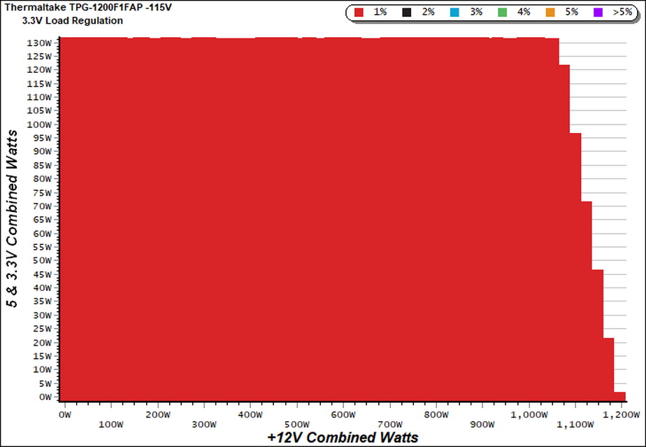To generate the following charts, we set our loaders to auto mode through our custom-made software before trying more than 25,000 possible load combinations with the +12V, 5V, and 3.3V rails. The load regulation deviations in each of the charts below were calculated by taking the nominal values of the rails (12V, 5V, and 3.3V) as point zero. The ambient temperature was between at 30°C (86°F) to 32°C (89.6°F).