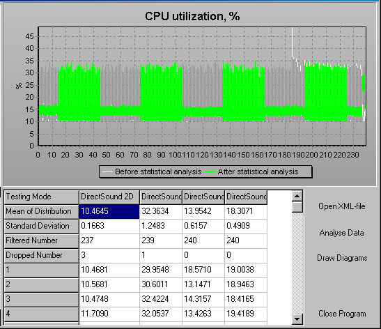 The way the Audigy 2 NX operates is very different, however, from that of the internal sound cards manufactured by Creative. That is because, while it does indeed use EAX HD, this is basically through an emulation performed by the central processor and not through the on-board circuit on the card. This has obvious repercussions on the processor's workload. Thus, the amount of processor occupied, which is in the order of 14% in the DirectSound 3D hardware, increases to 18% with the EAX. In the standard Creative cards, the rate of processor load decreases with the activation of the EAX, which takes over certain functions through hardware processing. The behavior is thus reversed.