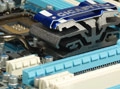 However, the UD7's key selling points are its PLX switch for on-board devices and Nvidia's nForce 200 bridge. The latter introduces additional PCI Express 2.0 lanes, multiplexed from the processor's 16 host lanes.