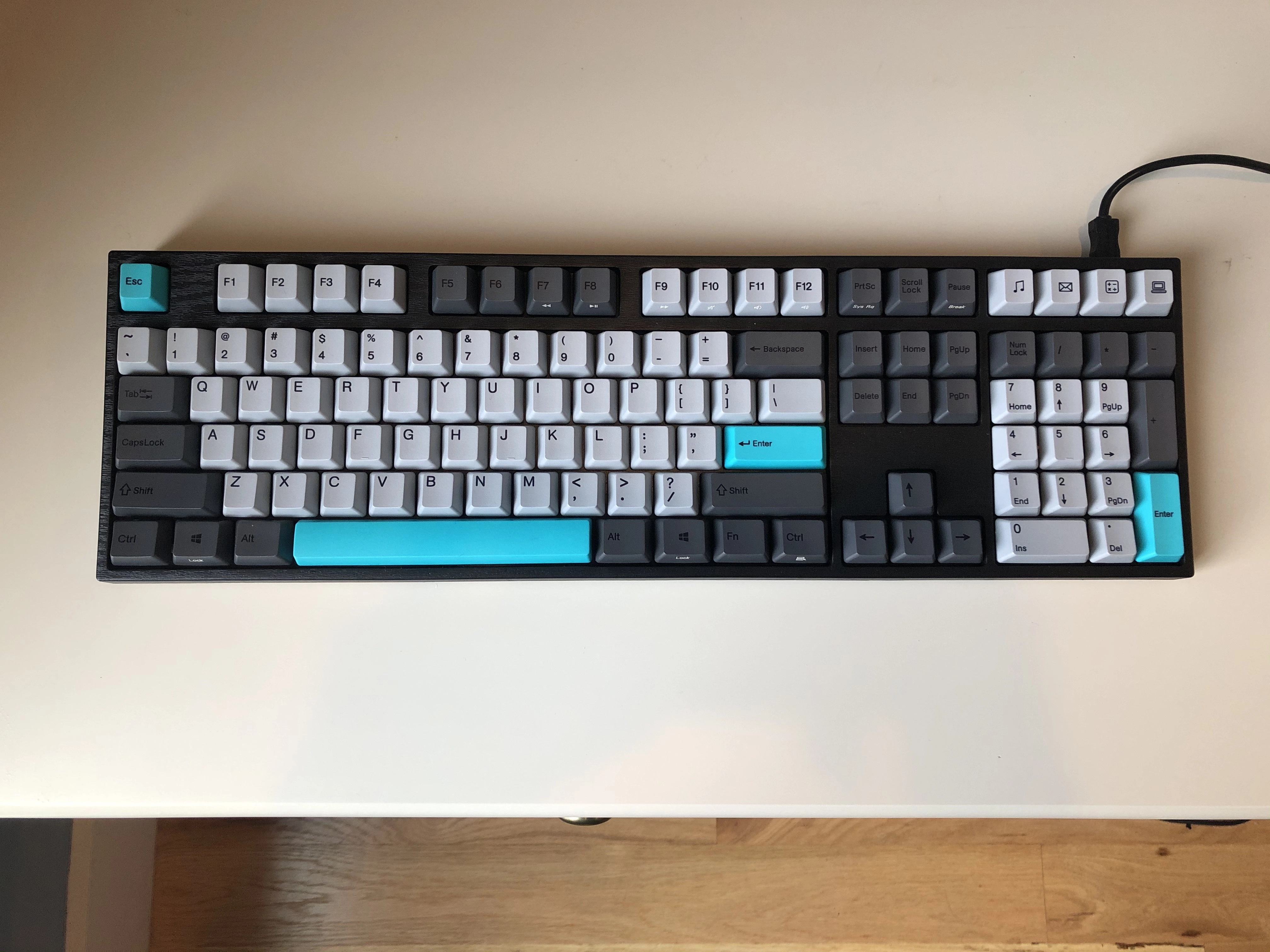 Varmilo also made an interesting choice in cutting the dedicated Menu button; instead you have to hit FN and right Ctrl, as the subscript reminds you. Living in the Menu button’s typical spot is a right FN key, and where the right FN key typically is, is a second Windows key. It’s a small issue that I barely noticed in use (as long as I have a right FN key I’m fine), but if it annoys you, it’ll annoy you even more to know the keys aren’t reprogrammable. The solution is to swap the left Windows key and FN key by holding down FN and the left Windows key.