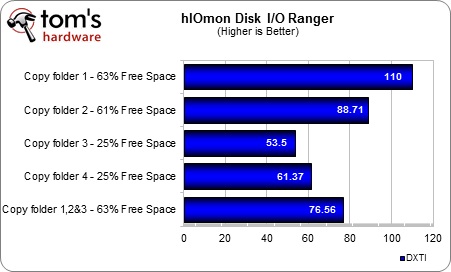 In the two bar charts below, we compare the DXTI for transfer/copy workloads in firmware 1.4.1.3 and 1.5 beta. The difference is remarkable. The beta version of 1.5 effectively mitigates the slowdown previously observed. The only odd behavior we noticed was a lock-up that occurred when folders one, two, and four were deleted at the same time. Our test platform became unresponsive for several seconds, which OCZ agrees is likely related to the garbage collection process working in the background.