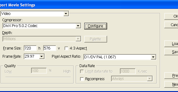 If the popular MPEG-4/ DivX codec is installed, that format can be specified for export as well.